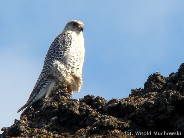 oznacza włócznię, oszczep i podkreśla jak wyśmienitym i doborowym jest on łowcą. Z kolei łacińskie Falco rusticolus (dawniej również Falco gyrfalco, F. arcticus) oznacza „sokoła wiejskiego”.