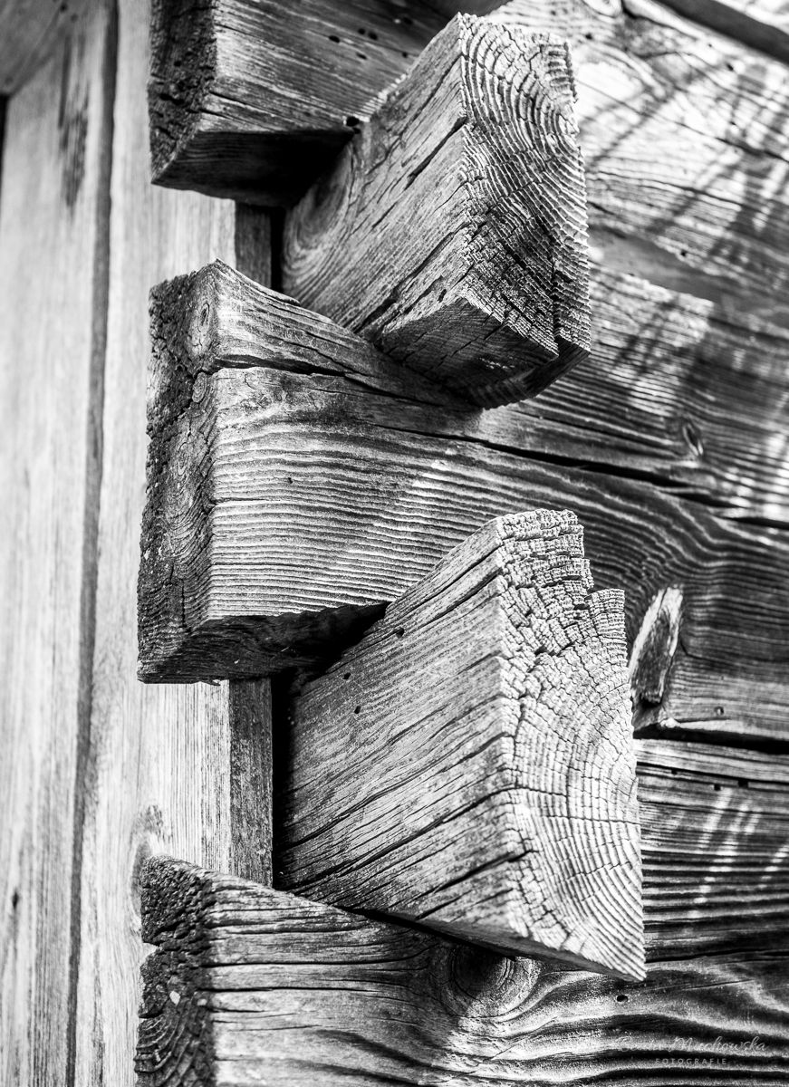 Na zdjęciu połączenie dwóch ścian podlaskiej szopy w jaskółczy ogon (fot. Beata Muchowska)